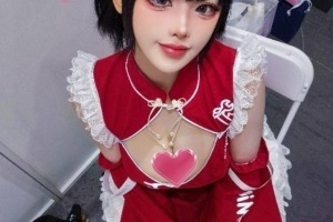 韩援Yasal狐耳红衣女仆装美照:注意力全在身材上!