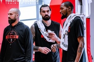 火箭官方晒训练照:杜兰特亚当斯互动 申京阿门在列 奥科吉麒麟臂