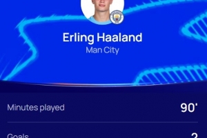 直播吧10月2日讯 在曼城客场2-2战平摩纳哥后,梅开二度的哈兰德当选全场最佳。