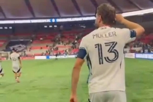 直播吧10月2日讯 加拿大冠军杯决赛,穆勒点射破门,帮助温哥华白浪4-2击败温哥华FC,捧起冠军奖杯。