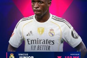 直播吧10月02日讯 德转今天发布了最新一期西甲身价更新,维尼修斯成为这次更新的焦点,他的身价从1.7亿欧下跌到了1.5亿欧。