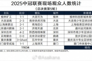 2025中冠联赛现场观众人数统计(总决赛第5轮)